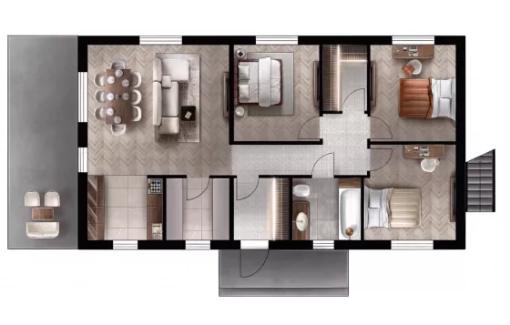 В продаже просторный одноэтажный дом построенный по железобетонной технологии. Комплектация тёплый контур.